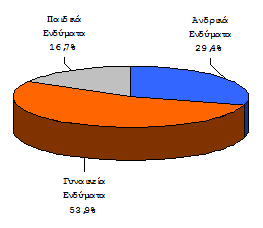 Η συμμετοχή των πωλήσεων ενδυμάτων στη συνολική αγορά (έσοδα) των αλυσίδων εκτιμάται ότι διαμορφώθηκε το 2009 στο 89,7%, ενώ το υπόλοιπο ποσοστό αφορά συμπληρωματικά προς την ένδυση είδη, όπως αξεσουάρ, εσώρουχα, υποδήματα κλπ. Το μεγαλύτερο ποσοστό επί των συνολικών πωλήσεων ενδυμάτων μέσω των εξεταζόμενων αλυσίδων για το 2009, εκτιμάται ότι καταλαμβάνουν τα γυναικεία ενδύματα (53,9%). Ακολουθεί η κατηγορία των ανδρικών ενδυμάτων με ποσοστό 29,4% και τα παιδικά με 16,7%.