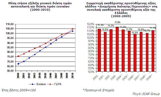 Η ακαθάριστη προστιθέμενη αξία του κλάδου «Διαχείριση Ακίνητης Περιουσίας», παρουσίασε μέση ετήσια αύξηση 6,1% την περίοδο 2000-2009.
